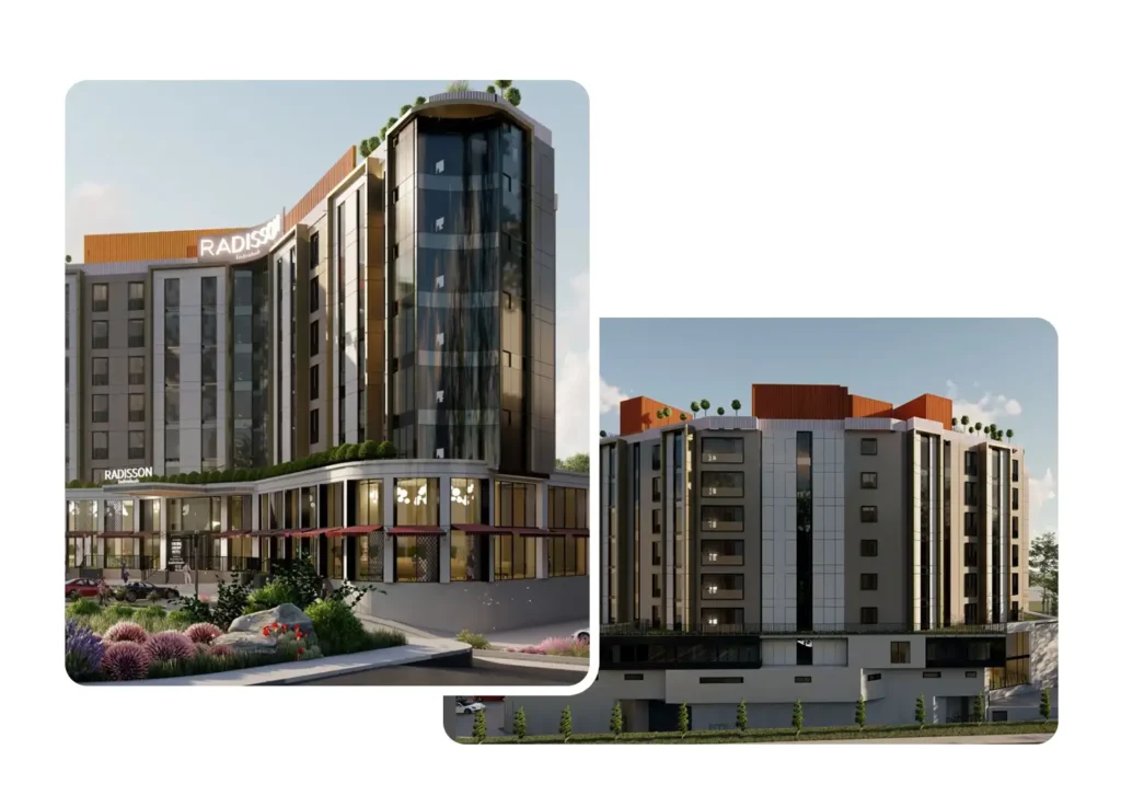 Radisson Otel, sadece bir konaklama mekanı değil, modern mimarinin ve kalıcı sağlamlığın bir ifadesidir. Otelimizin dış cephesi, şehrin dokusuna uyum sağlayan ancak kendi zarafetini hemen belli eden keskin ve çağdaş hatlarla tasarlanmıştır. Yüksek kaliteli, depreme dayanıklı yapı malzemeleri kullanılarak inşa edilen bina, güvenliği ve dayanıklılığı en üst seviyede tutar. Geniş ve yüksek tavanlı lobimizden başlayarak, koridorlar ve ortak kullanım alanları, misafirlerin ferahlık ve lüks hissini dorukta yaşaması için titizlikle planlanmıştır. Yapısal tasarımımız, estetik kaygıları işlevsellikle birleştirerek, her köşede konfor ve prestij sunar.
